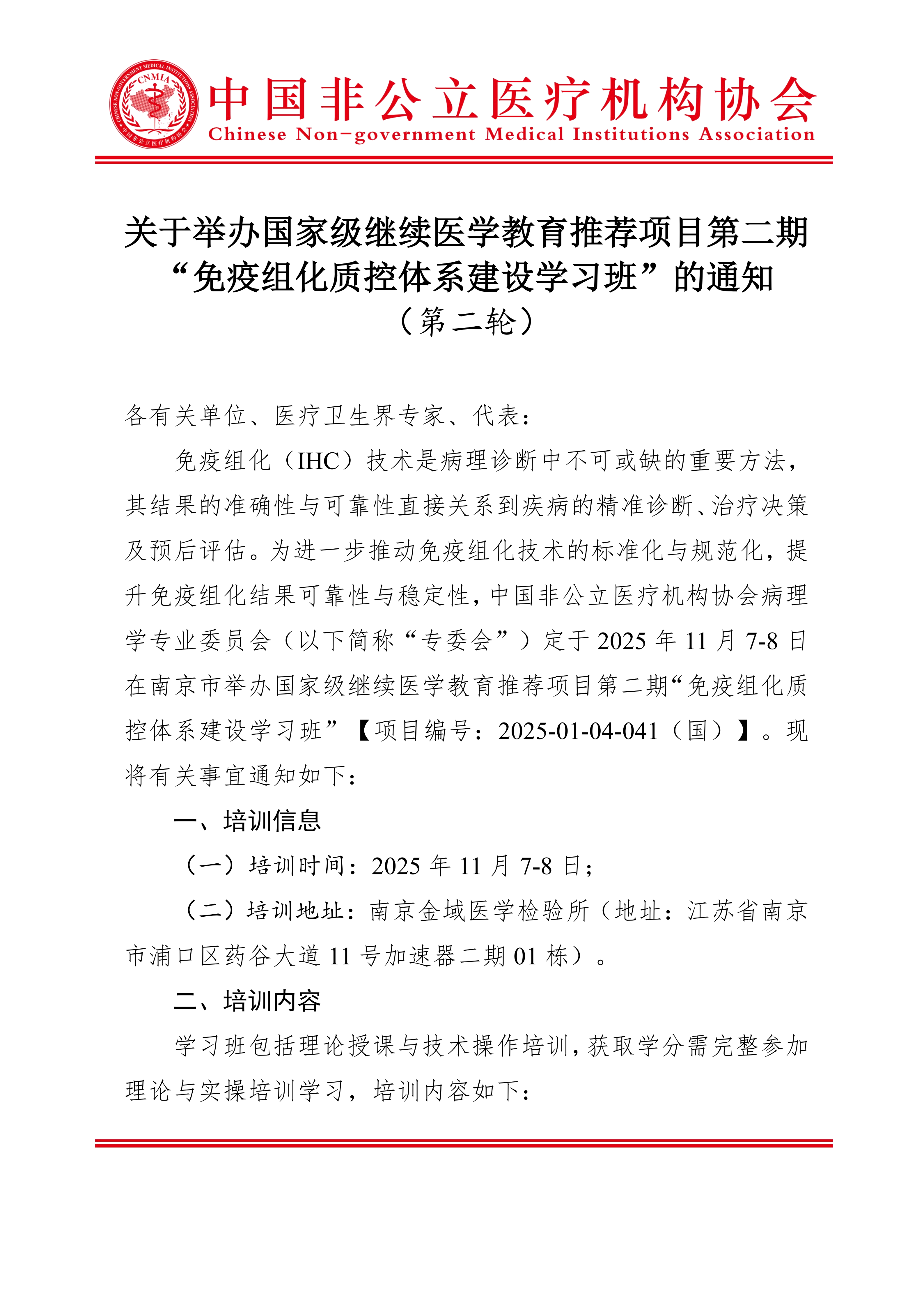 學分項目丨關于舉辦國家級繼續醫學教育推薦項目第二期“免疫組化質控體系建設學習班”的通知(第二輪)