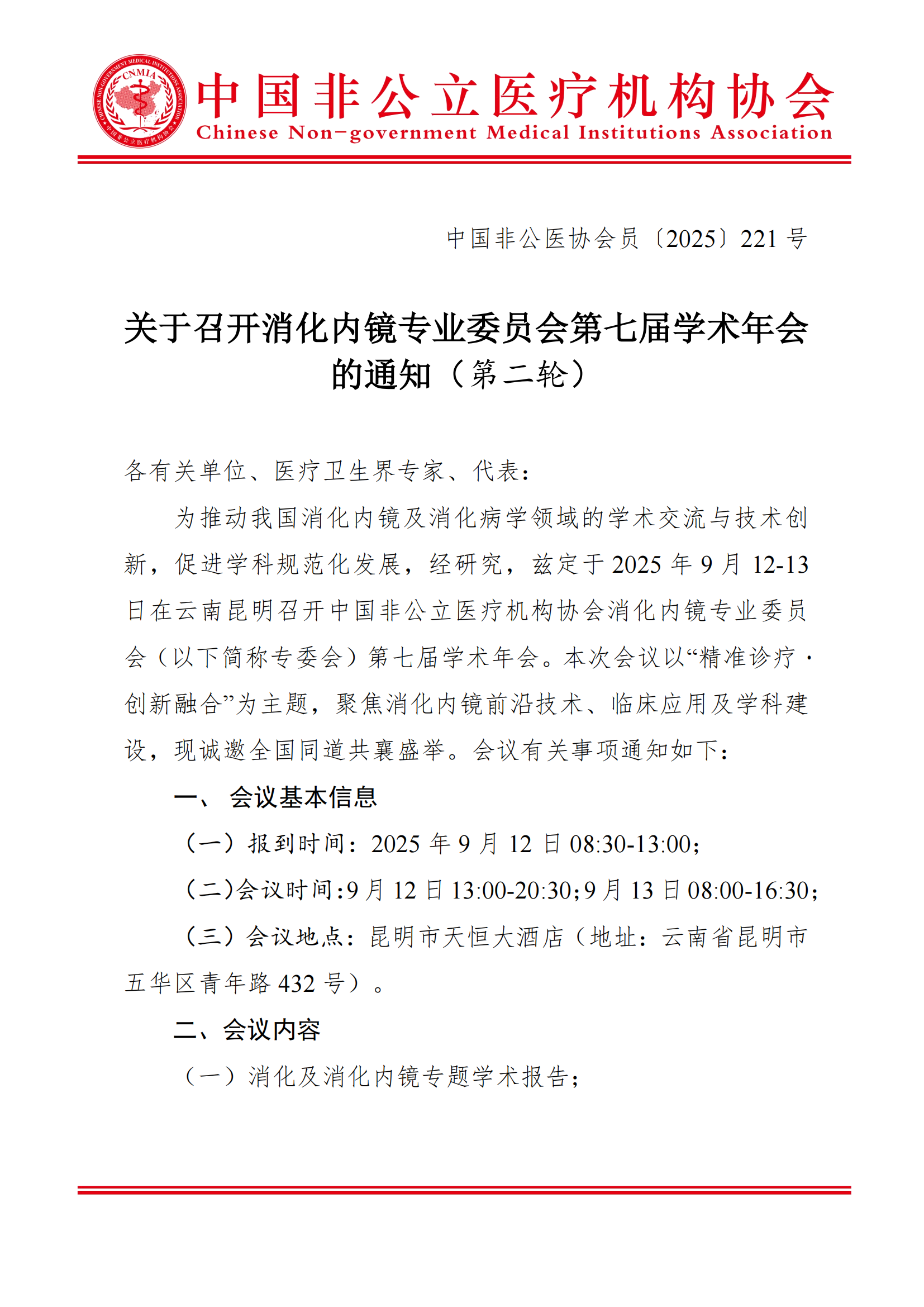 分支機構丨關于召開消化內鏡專業委員會第七屆學術年會的通知(第二輪)