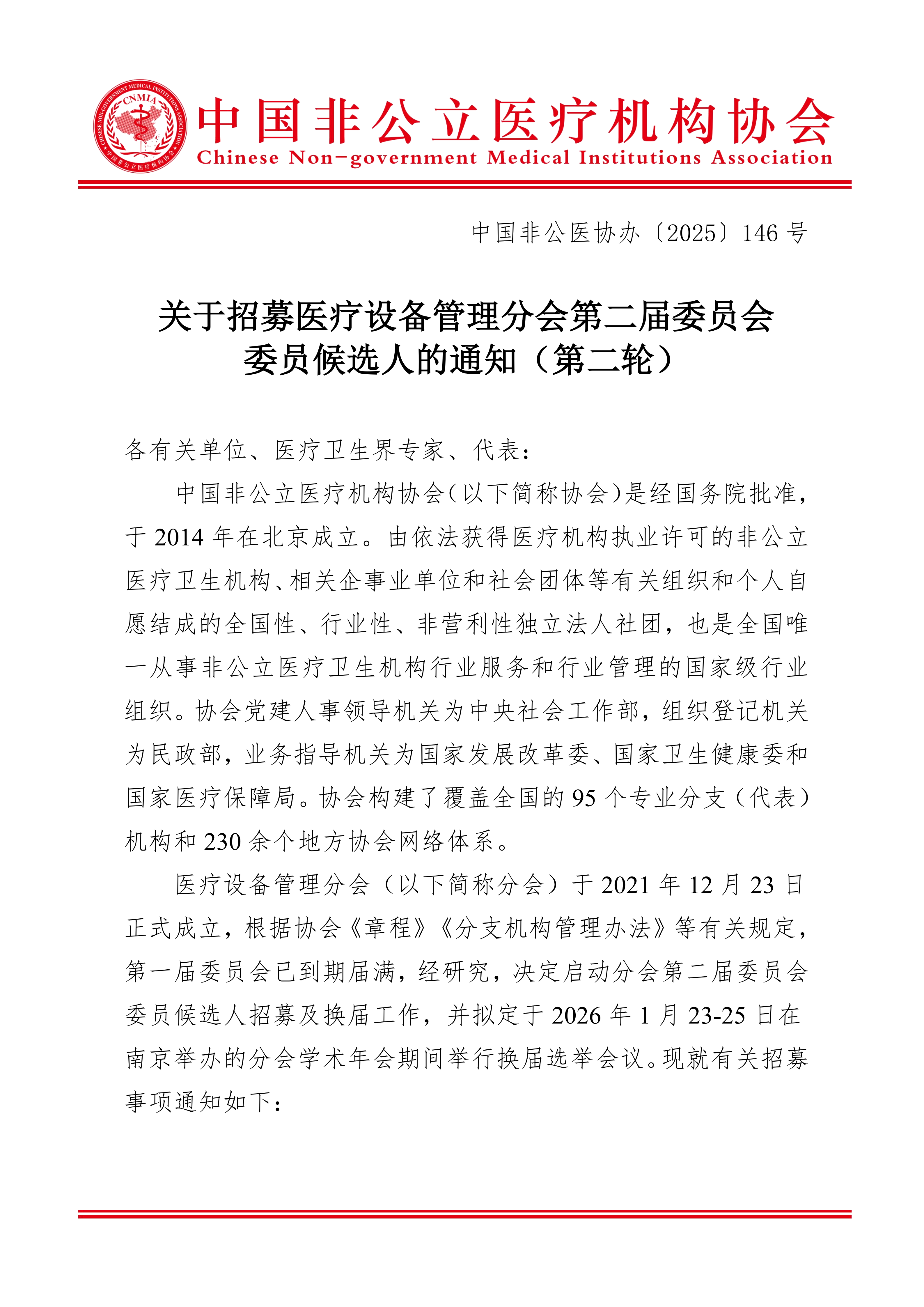 招募通知丨關于招募醫療設備管理分會第二屆委員會委員候選人的通知(第二輪)