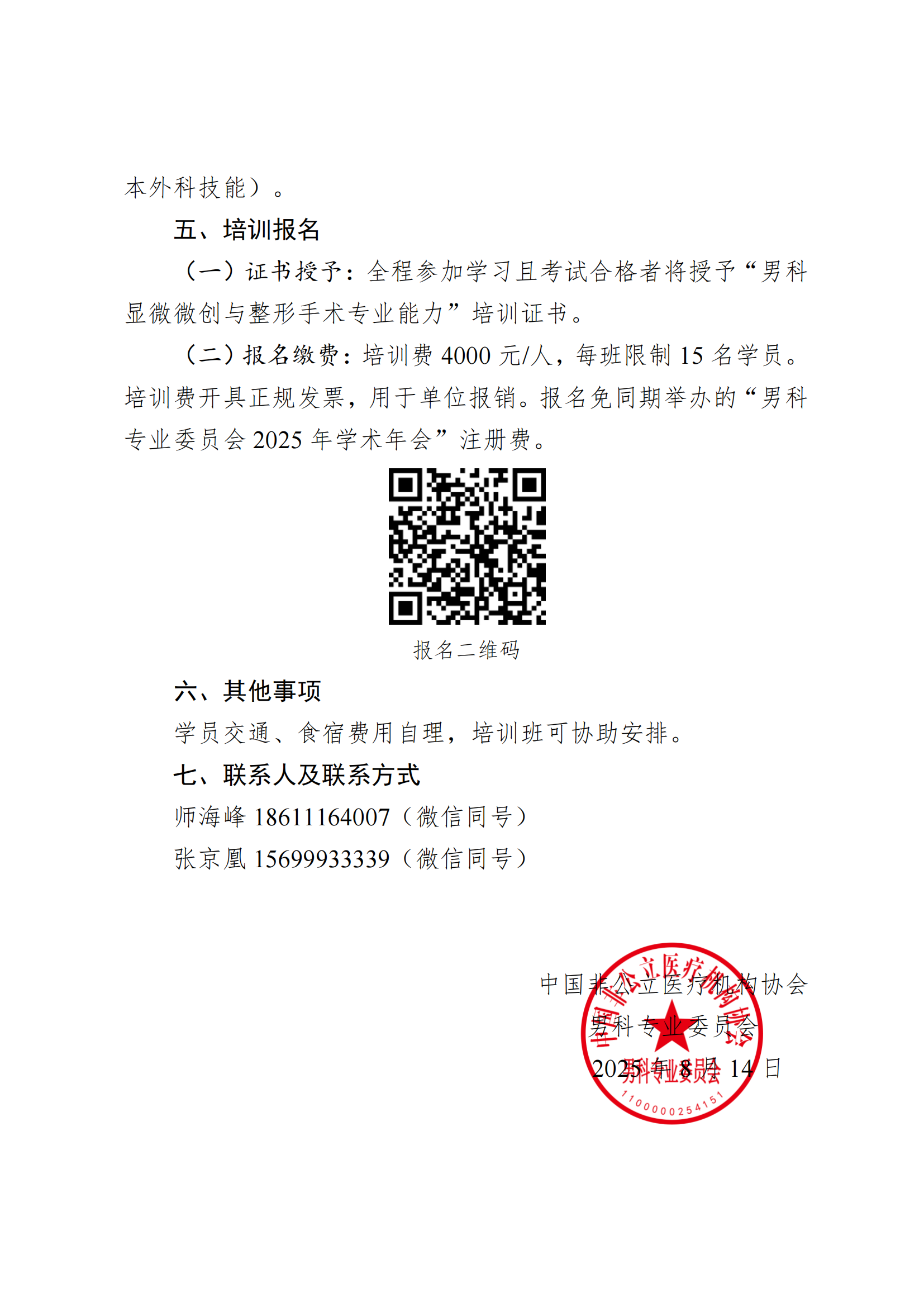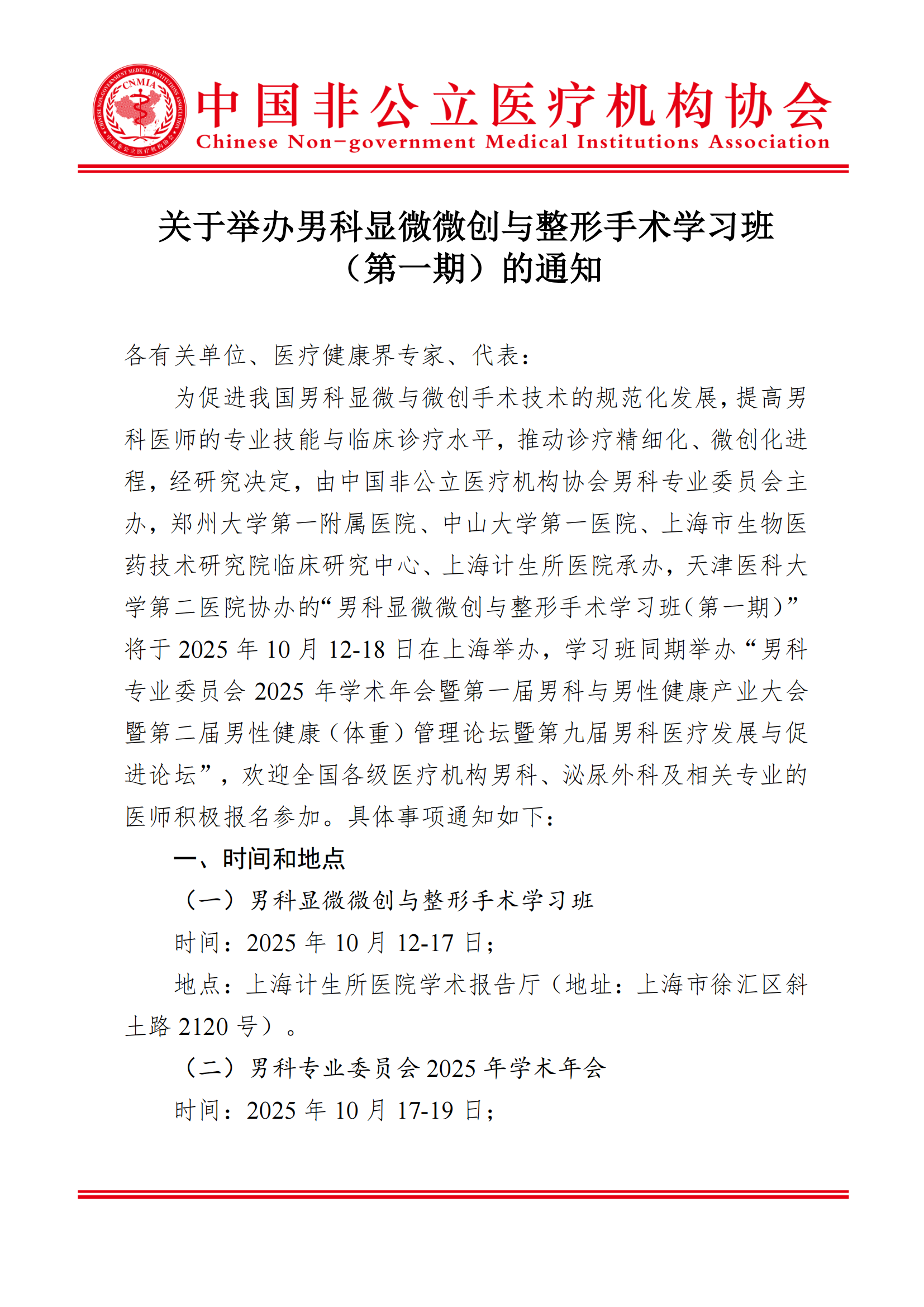 分支機(jī)構(gòu)丨關(guān)于舉辦男科顯微微創(chuàng)與整形手術(shù)學(xué)習(xí)班(第一期)的通知
