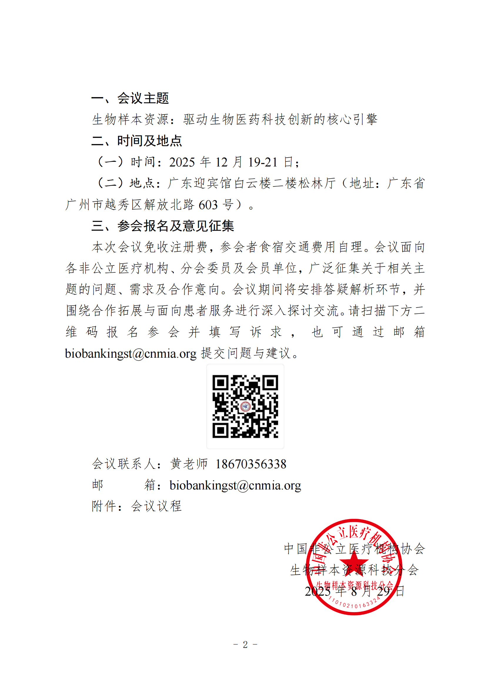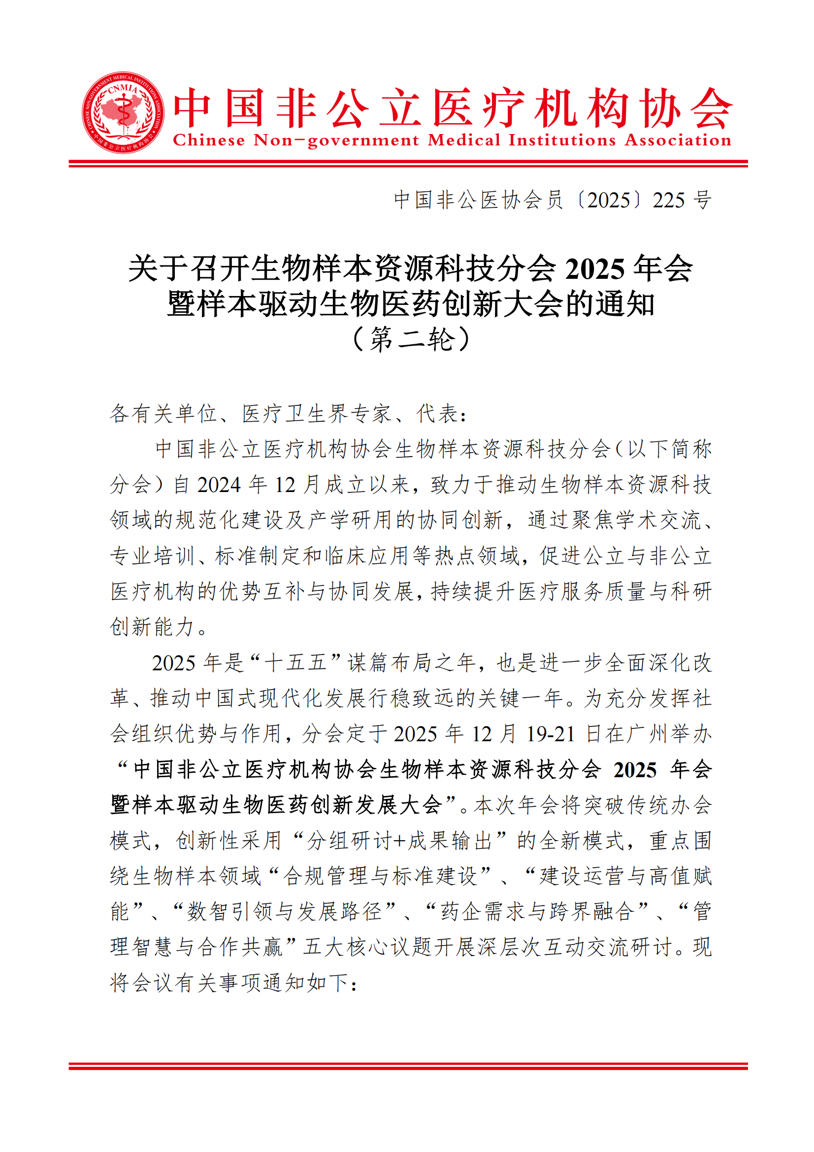分支機(jī)構(gòu)丨關(guān)于召開生物樣本資源科技分會(huì)2025年會(huì)暨樣本驅(qū)動(dòng)生物醫(yī)藥創(chuàng)新大會(huì)的通知(第二輪)